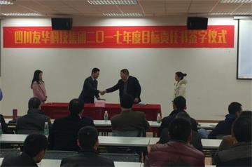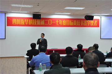 目標簽字儀式上,各公司總經理紛紛表達了對完成目標任務的信心和決心。吳友華總裁在肯定各單位所做工作的同時,對各單位提出了殷切期望,并號召集團全體同仁團結一心,為實現2017年奮斗目標而努力!